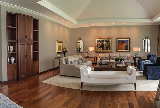 Proceso de diseño de interiores desde planos, construcción, ambientación, hasta entrega final.